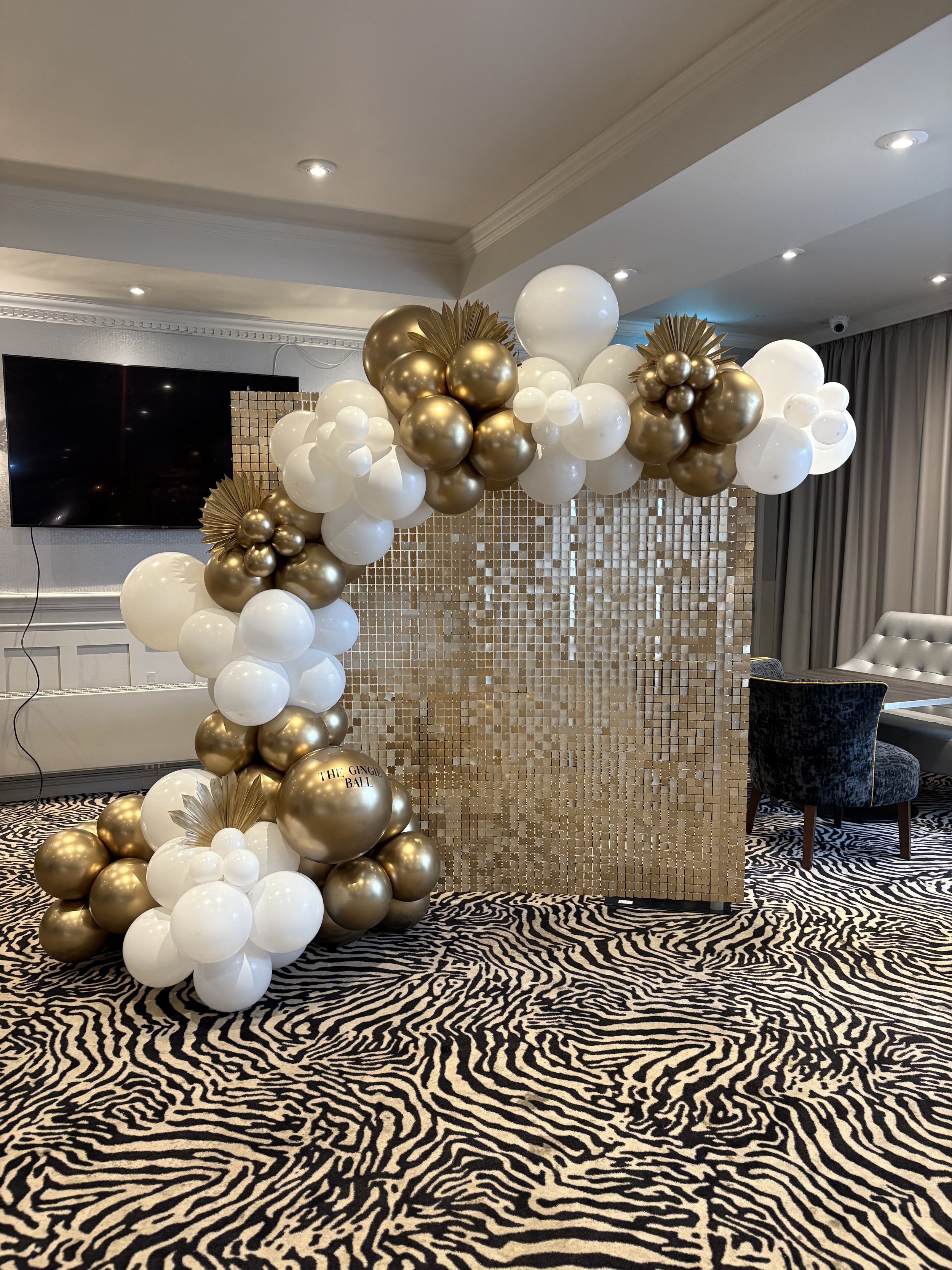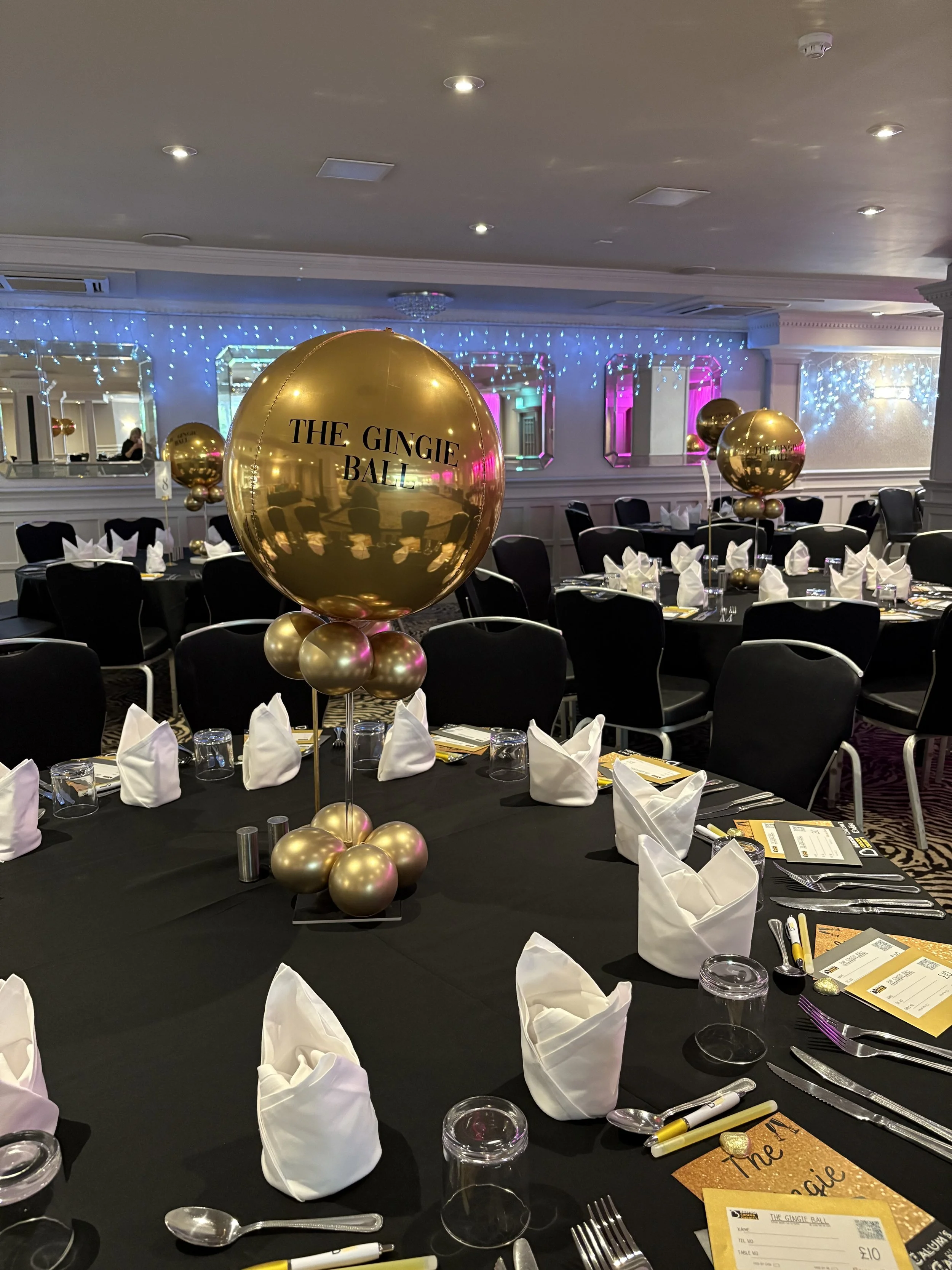 The display was complemented with bespoke balloon styling in the company’s colours, including orb balloons printed with their logo for a cohesive branded finish. We also designed elegant table centrepieces incorporating subtle logo detailing, ensuring every element of the space felt polished, professional and perfectly aligned with the brand identity. ✨